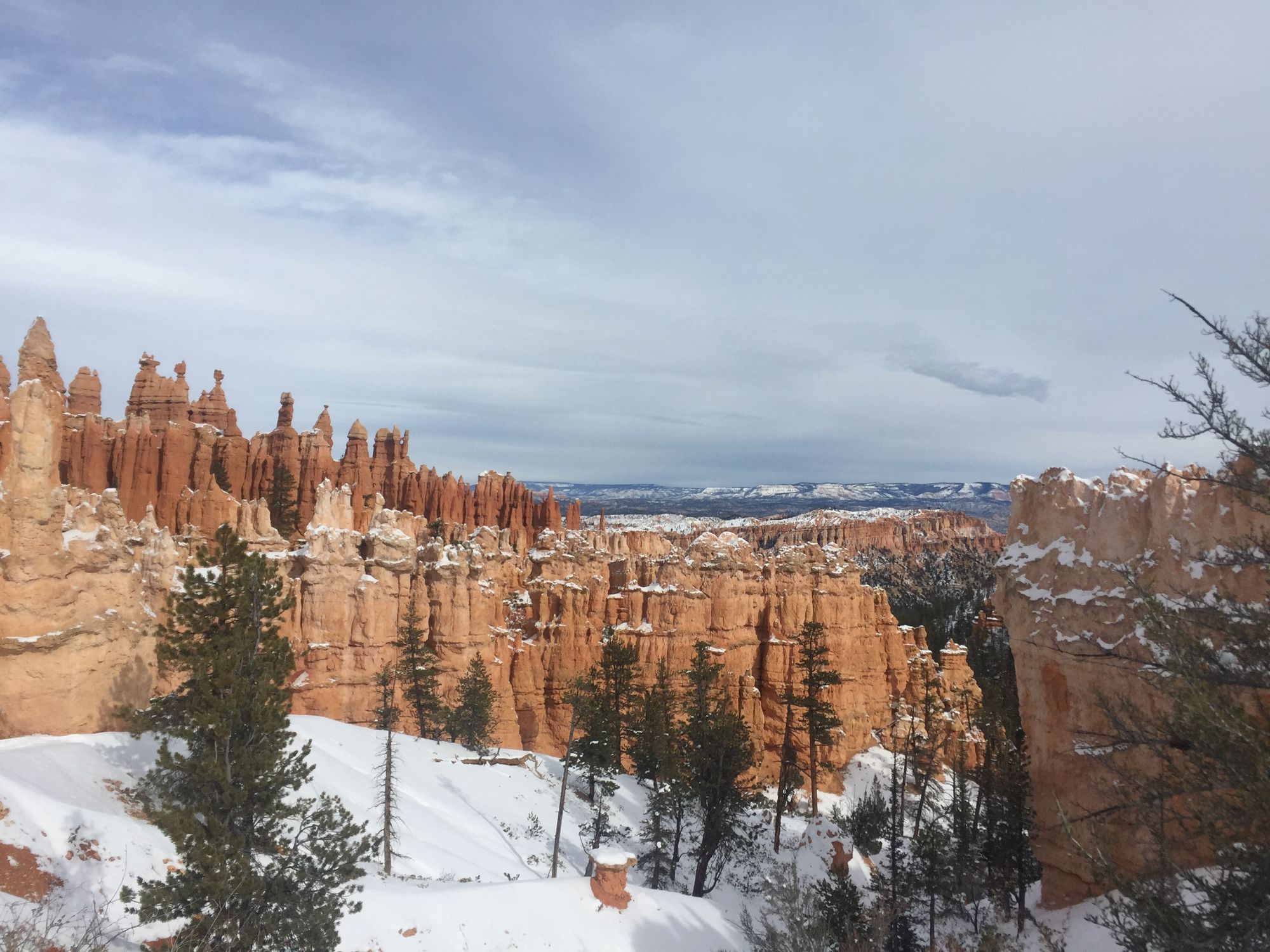 Similarly, Bryce Canyon even waved our entrance fee because we visited out of season. The canyon, really an amphitheater, and its famous Oh, the Places You’ll Go! hoodoos stood out even more sharply, just as in arches, because of the snow’s white contrast. As we concluded our hike in Bryce, we approached the 8000’ elevation at the canyon’s rim to find what I had jokingly suspected we would encounter at each of our emptiest, most remote turns: a busload of incongruously fashion-forward Chinese tourists. Out of season, and potentially in the summer too, the town of Bryce had depressingly few food options, so who knows where they ate. We didn’t see them at the Big Fish Family Restaurant in the town of Penguitch. Even in Utah, Family Restaurant does not imply that they don’t serve beer.